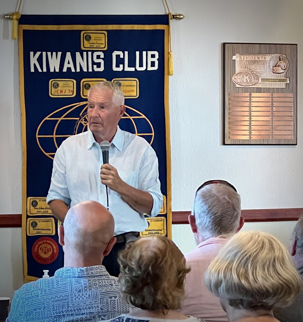 I en sal fylt til randen holdt han et engasjerende, lærerikt og underholdende foredrag. Temaet var utviklingen av vestlige demokratier, og de prinsipper som disse er tuftet på. Hva skjer hvis internasjonal lov og rett ikke overholdes? Med krigen i Ukraina som et uhyggelig bakteppe ble publikum tatt med på en reise i historien om demokratiets utvikling. Små anekdoter og muntre historier skapte en fin balanse mellom underholdning og alvor.
